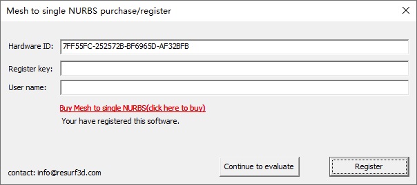 Please send your Hardware ID and your Register Name to info@resurf3d.com , then we will create the key and send it back to you.
