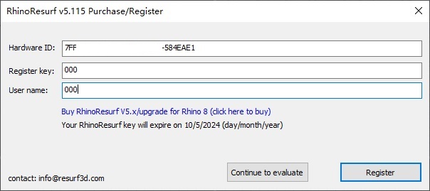 Answer: To fix this problem, please run Rhino as administrator firstly, you put mouse cursor on Rhino icon, click right mouse button, select 'run as administrator', and run Rhino, then run command _RsRegister and register the key again. This is because Administrator has authority to save the key in your system.