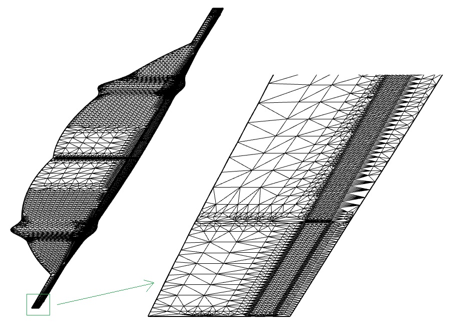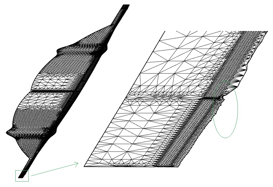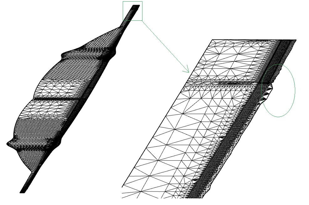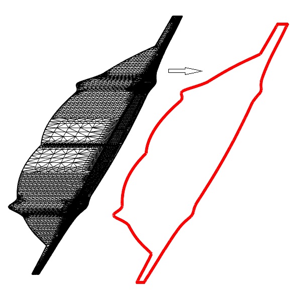 The Challenge Faced by NTPT : Some 3D meshes produce inaccurate 2D meshes after unfolding, with rough, non-smooth boundaries that are unacceptable for practical use. NTPT submitted a challenging test case. In this case, the built-in mesh unfolding functions in Rhino failed to deliver satisfactory results. NTPT hoped that the RESURF team could solve this problem. The following images show the 3D mesh in this case :