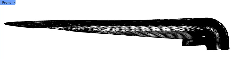 Front view of the 3D mesh model Unfolding using the Rhino command Squish yielded poor results, as shown in the two images below. When the unfolded mesh is magnified, the edges appear jagged and non-smooth, which is unacceptable to the user.