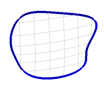 曲面边界曲线 (surface edge) 是指落在曲面上的曲线,这条曲线由一条曲面的 2D 参数空间上的二维曲线定义 。 如下图中的蓝色曲线。