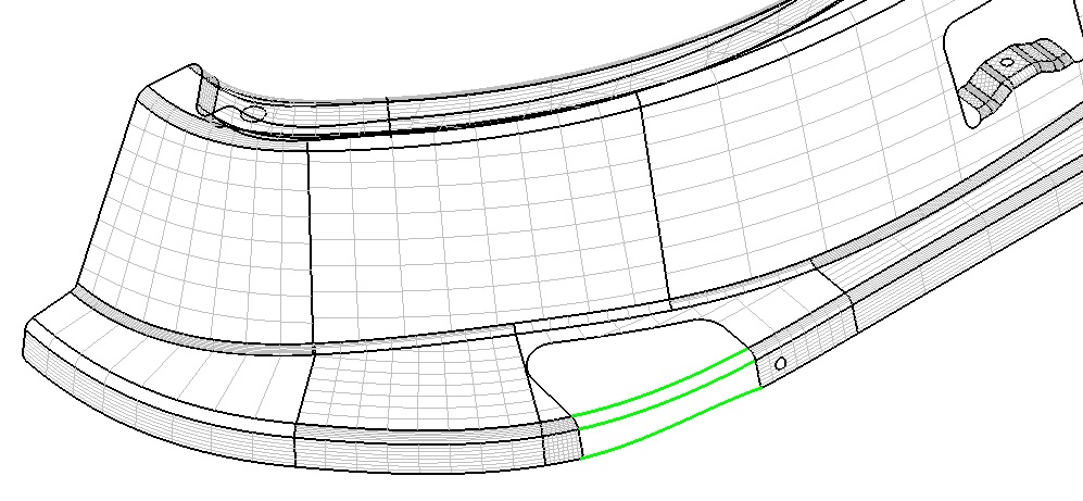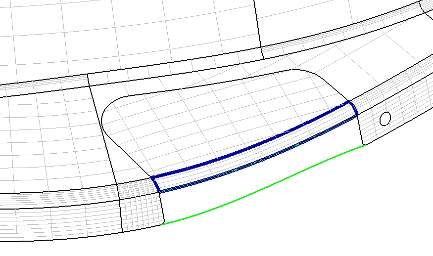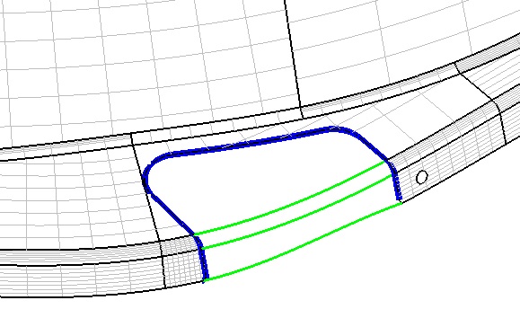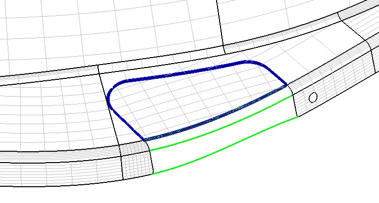 (图1) 图2拾取蓝色的孔洞边界线作为生成NURBS曲面的输入参数 :